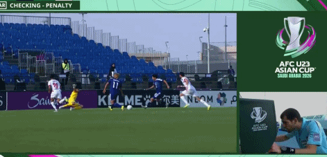 在2026年U23亞洲杯八強(qiáng)戰(zhàn)里,日本對陣阿聯(lián)酋。在古?柊介禁區(qū)內(nèi)被絆倒之后,主裁判回看慢鏡頭之后取消點球。